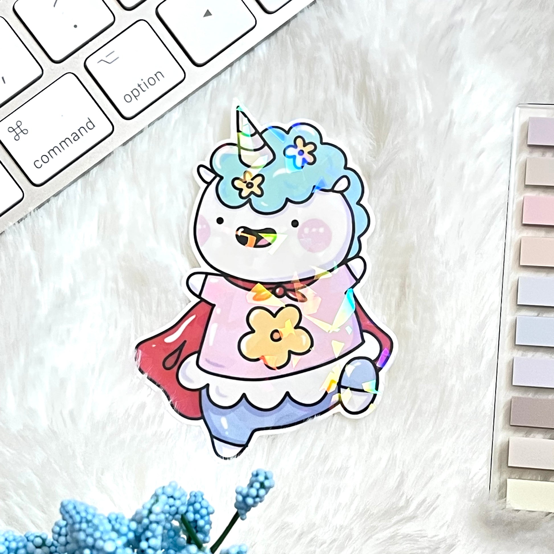 🦄Kawaii/Chibi/X-tra Cute Sticker- They are ready to save the Earth! With flower designed super hero outfit and red cape, this unicorn is ready to fly into action and offer you some emotional support! Just looking at them gives you a sense of cute power and utmost bravery. This sticker will come ready to be attached to journals, lap tops, water bottles and anything else that needs a little cuteness✨